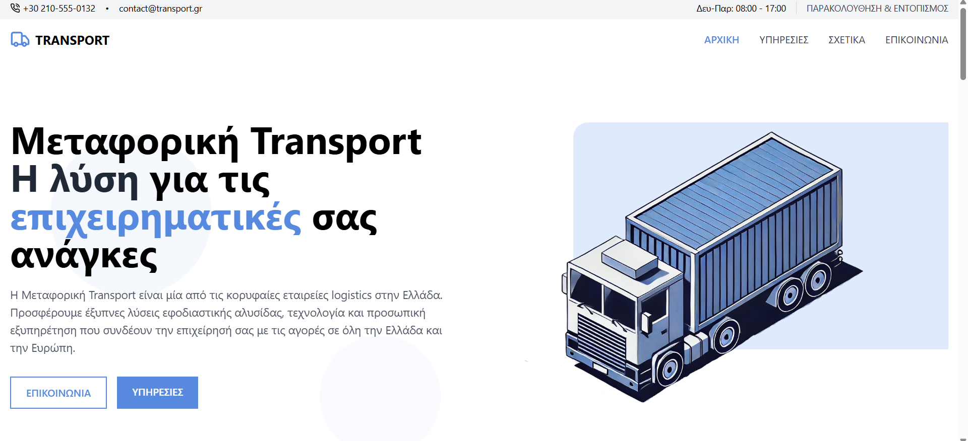 A high-performance web solution for a leading Greek transport company. Designed to streamline service presentation and enhance corporate authority in the competitive logistics and supply chain market.